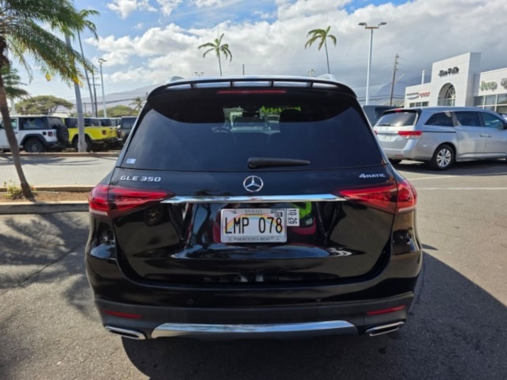 This Mercedes-Benz GLE has many features and is well equipped including 3.69 Axle Ratio, 4-Wheel Disc Brakes, 8 Speakers, ABS brakes, Air Conditioning, Alloy wheels, AM/FM radio: SiriusXM, Anti-whiplash front head restraints, Apple CarPlay®/Android Auto®, Auto High-beam Headlights, Auto tilt-away steering wheel, Auto-dimming door mirrors, Auto-dimming Rear-View mirror, Automatic temperature control, Brake assist, Bumpers: body-color, Compass, Delay-off headlights, Driver door bin, Driver vanity mirror, Dual front impact airbags, Dual front side impact airbags, Electronic Stability Control, Emergency communication system: eCall Emergency System, Exterior Parking Camera Rear, Four wheel independent suspension, Front anti-roll bar, Front Bucket Seats, Front Center Armrest, Front dual zone A/C, Front reading lights, Fully automatic headlights, Garage door transmitter: HomeLink, Genuine wood console insert, Genuine wood dashboard insert, Genuine wood door panel insert, Heated door mirrors, Heated front seats, Heated Power Front Seats w/Driver Memory, Illuminated entry, Knee airbag, Leather steering wheel, Low tire pressure warning, MB-Tex Upholstery, Memory seat, Navigation system: MBUX, Occupant sensing airbag, Outside temperature display, Overhead airbag, Panic alarm, Passenger door bin, Passenger vanity mirror, Power adjustable front head restraints, Power door mirrors, Power driver seat, Power Liftgate, Power moonroof, Power passenger seat, Power steering, Power windows, Premium audio system: MBUX, Radio data system, Radio: 12.3" Media Display w/Touchscreen, Rain sensing wipers, Rear anti-roll bar, Rear fog lights, Rear reading lights, Rear seat center armrest, Rear window defroster, Rear window wiper, Remote keyless entry, Roof rack: rails only, Security system, Speed control, Speed-sensing steering, Speed-Sensitive Wipers, Split folding rear seat, Spoiler, Steering wheel memory, Steering wheel mounted audio controls, Tachometer, Telescoping steering wheel, Tilt steering wheel, Traction control, Trip computer, Turn signal indicator mirrors, Weather band radio, and Wheels: 19" Twin 5-Spoke. Black 2022 Mercedes-Benz GLE GLE 350 4MATIC® 4MATIC® 9-Speed Automatic 2.0L I4 Turbocharged